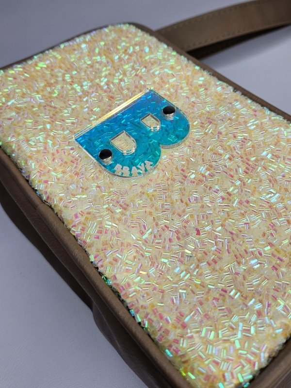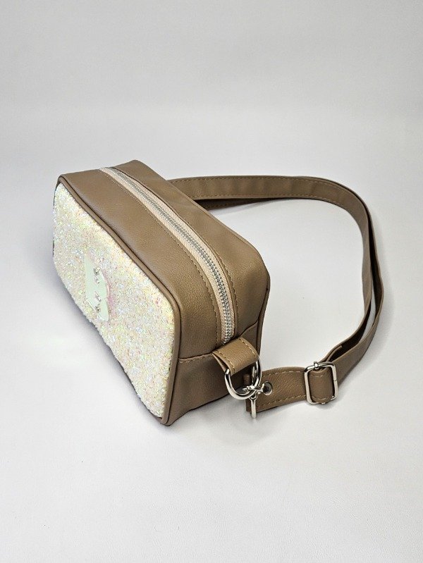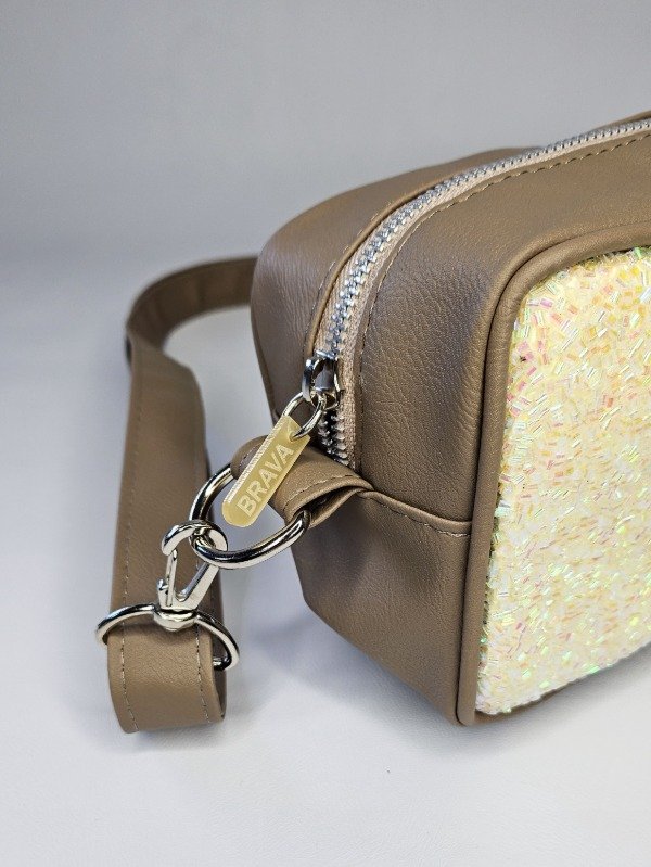 Su frente y espalda estan hechs con un PU precioso, lleno de canutillos distintivos al tacto que hacen que esta bandolerasea delicada y distinguida.